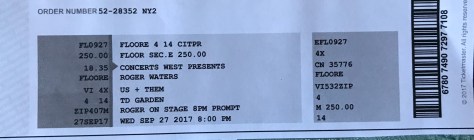 September 27 – Roger Waters (TD Garden, Boston)